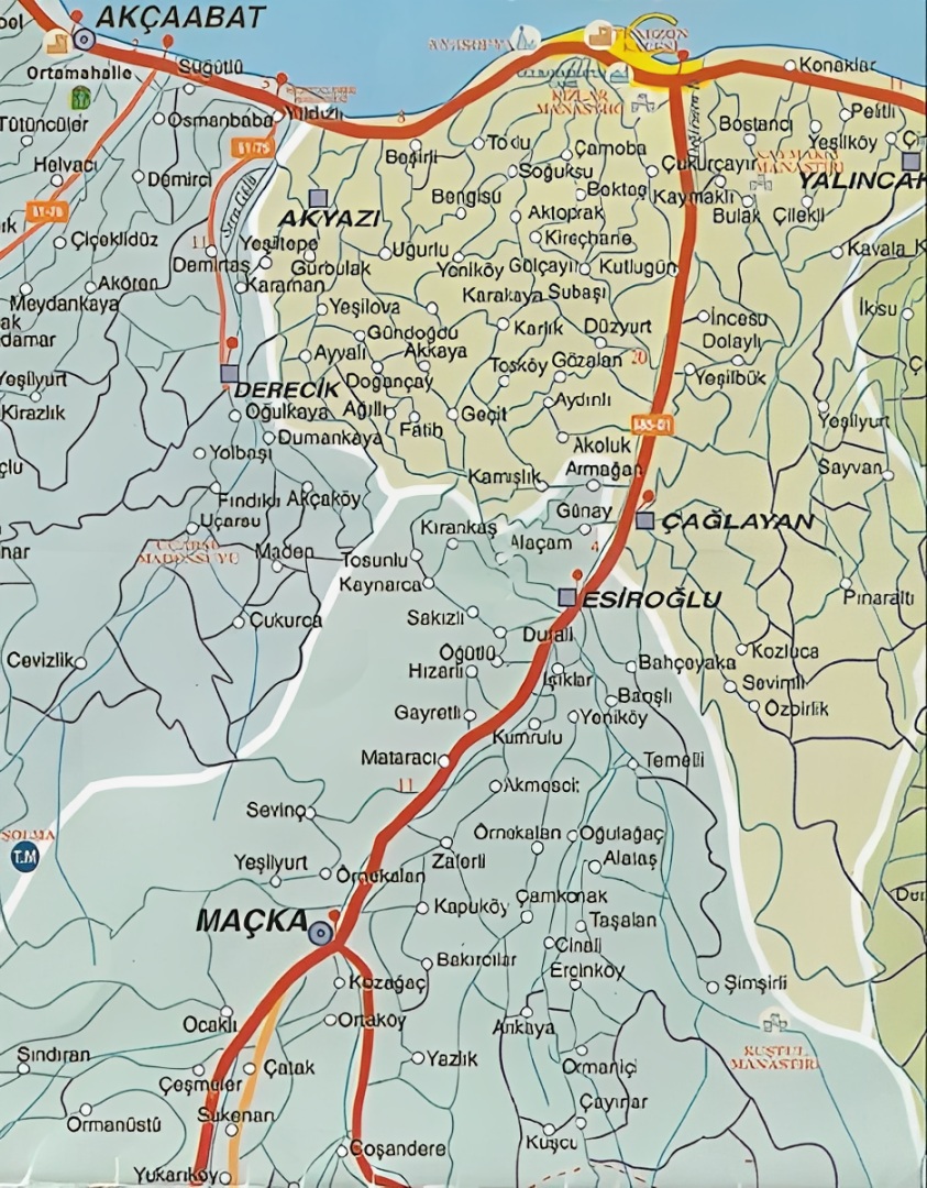 Fig. 1: Maçka area (Akçaabat to Maçka = 24 km, Home of Trabzon Tourist Map)