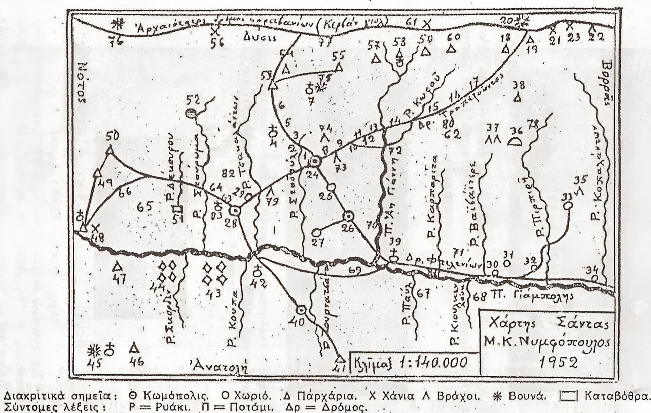 Χάρτης της Σάντας (απο τον Μιλτιάδη Νυμφόπουλο 1952).